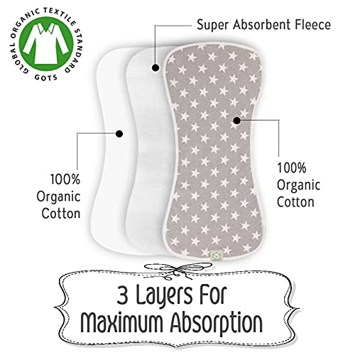 3 Layers Of Quality Materials – We made our KeaBabies Burp Cloth Set to be plushy and soft for your baby’s comfort. The front and back of the burp cloth are made of 100% organic cotton. The middle layer is filled with quality fleece which helps to absorb maximum moisture without soaking your clothes.
