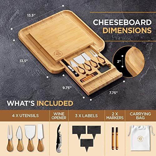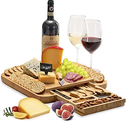 🎁 SPACIOUS TRAY FOR PARTY SNACKS – This Cheese Tray’ slide-out hidden drawer optimizes your dining space as it holds the included knives and utensils. It also has grooved edges to accommodate additional snacks such as crackers or meats.